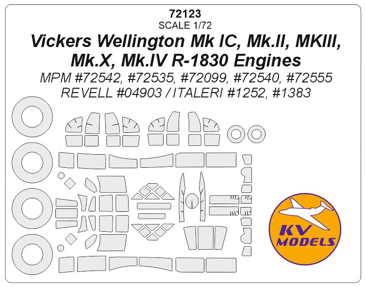 KV Decals - 1/72 Vickers Wellington + wheels masks (for Mpm MPM72542, MPM72535, MPM72099, MPM72540, MPM72555 and Revell RV04903 and Italeri IT1252, IT1383 kits)