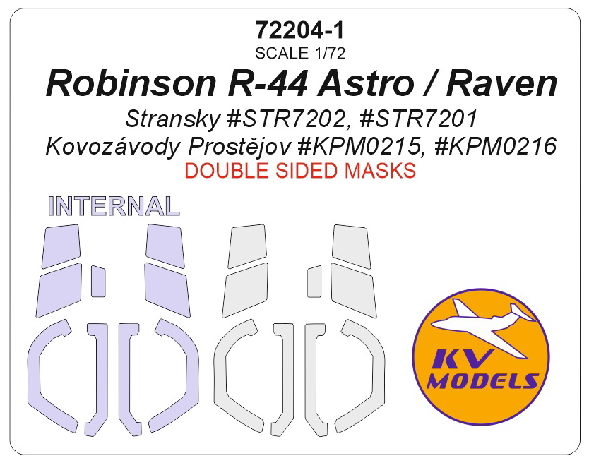 KV Decals - 1/72 Robinson R-44 Astro / Raven for Stransky kits PartSTR7202, PartSTR7201 / for Kovozavody Prostejov kits PartKPM0215, PartKPM0216 wheels and canopy frame paint masks inside & outside