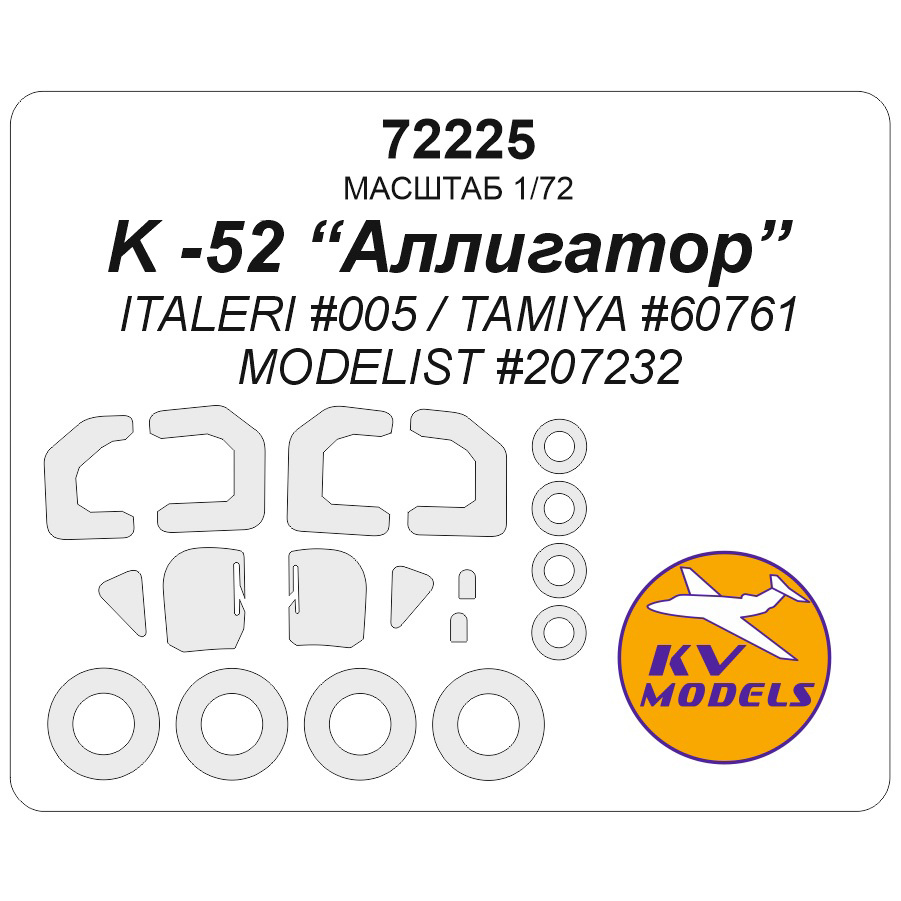 KV Decals - 1/72 KA-52 Alligator for Italeri Part005 / for Tamiya Part60761 / for Modelist Part207232 wheels and canopy frame paint masks outside only
