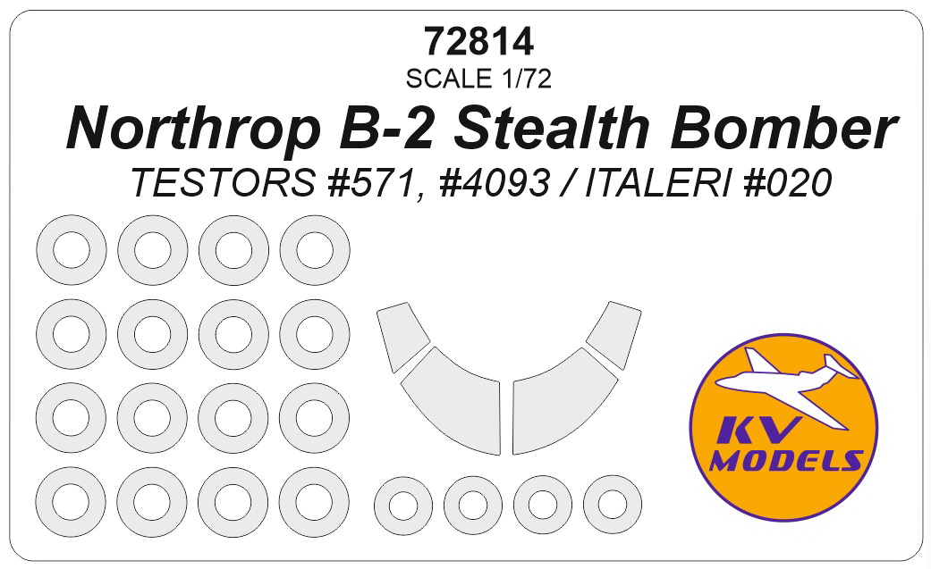 KV Decals - 1/72 Northrop B-2 Stealth Bomber Testors Part571, Part4093 / Italeri Part020 wheels and canopy frame paint masks outside only Testors / Italeri