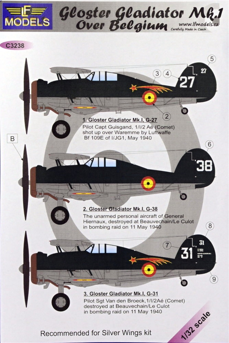 LF MODEL - 1/32 Decals Gloster Gladiator Mk.I over Belgium