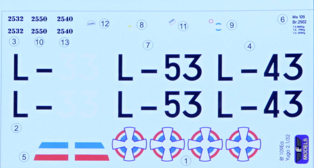 LF MODEL - 1/32 Decals Bf 109E3a o.Yugoslavia (EDU,TRUMP) II.