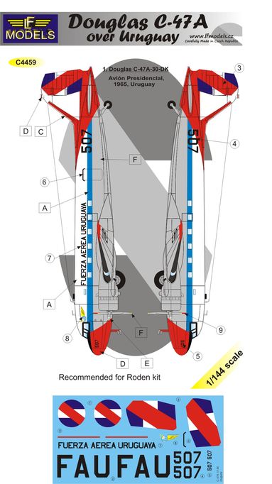 LF MODEL - 1/144 Decals Douglas C-47A over Uruguay