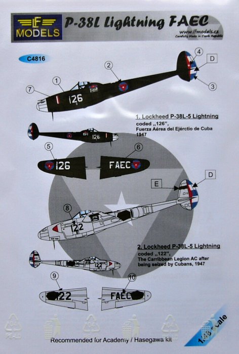 LF Model - 1/48 Decals P-38L Lightning FAEC (ACAD/HAS)