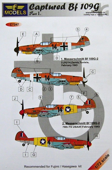 LF Model - 1/72 Decals Bf 109G Captured (FUJ/HAS) Part I.