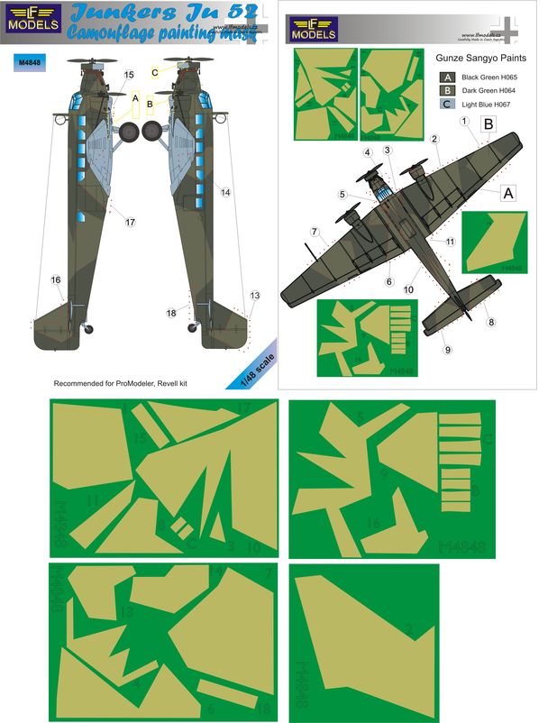 LF Model - 1/48 Junkers Ju 52/3m paint masks (for Monogram and Revell kits)