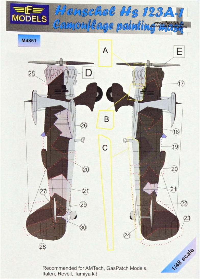 LF Model - 1/48 Henschel Hs-123A-1 Camouflage Painting Mask (for AMTech, GasPatch Models, Italeri, Revell and Tamiya kits)
