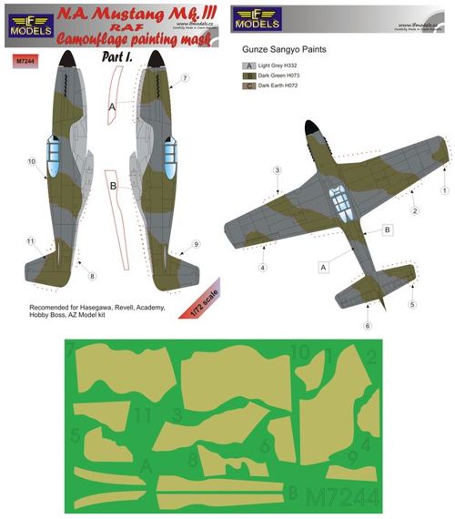 LF Model - 1/72 Masks for North-American Mustang Mk.III RAF Pt.I (designed to be used with Hasegawa, Revell, Academy, Hobby Boss and AZ Model kits)