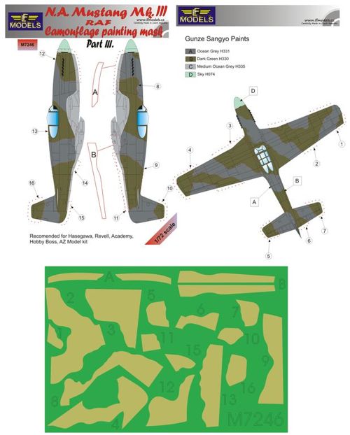 LF Model - 1/72 Masks for North-American Mustang Mk.III RAF Pt.III (designed to be used with Hasegawa, Revell, Academy, Hobby Boss and AZ Model kits)