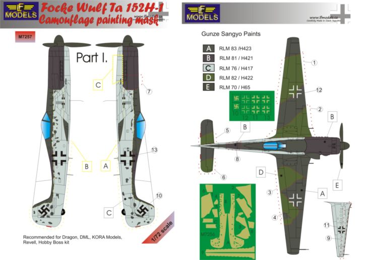 LF Model - 1/72 Focke-Wulf Ta-152H-1 Part I Camouflage Painting Mask (for DML, Dragon, Hobby Boss, Kora, Revell kits)