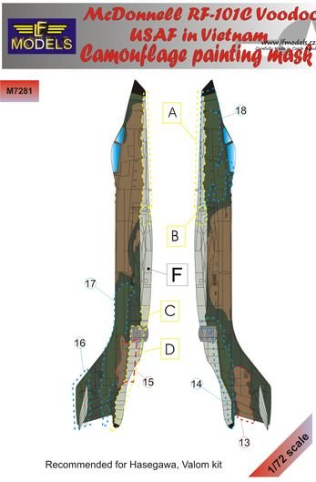 LF Model - 1/72 McDonnell RF-101C Voodoo USAF in Vietnam camouflage pattern paint mask (for Hasegawa and Valom kits)