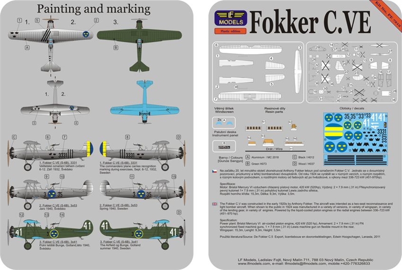 LF MODEL - 1/72 Fokker C.VE - Sweden 1932-1940 (3x camo)