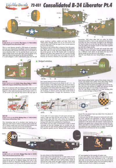 Lifelike - 1/72 Consolidated B-24 Liberator A/C #1--B-24D-20-CO, "The Goon" of 14AF/308BG/374BS A/C #2--B-24J-110-CO, "Shoo Shoo Baby", "#984" of 5AF/22BG/408BS A/C #3--B-24L-15-FO, "Mickey Finn" of 15AF/459BG/758BS A/C #4--B-24M-15-FO, "Sleepy-Time Gal", "#47" of 10AF/7BG/493BS