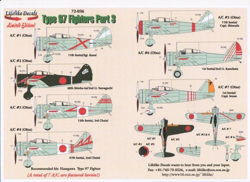 Lifelike - 1/72 Nakajima Ki-27 Type 97 'Nate' Part 3 (7) 11th Sentai, 68th Shinbu-tai, 13th Sentai, 47th Sentai, 11th Sentai, 1st Sentai