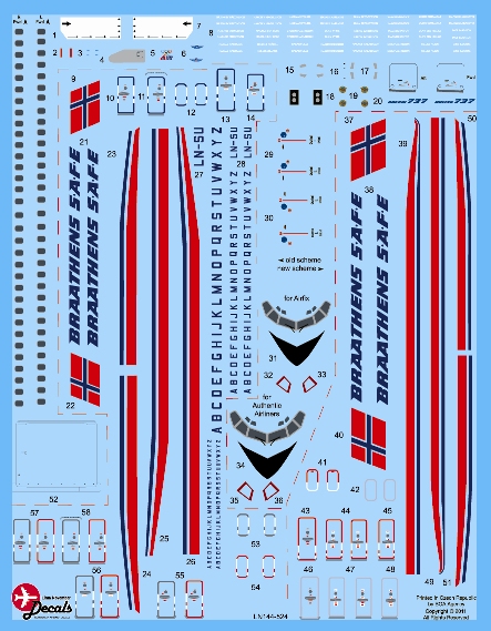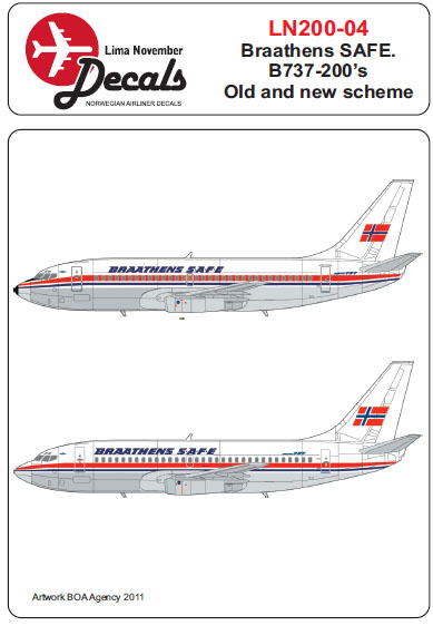 Lima November - 1/200 Braathens SAFE B737-200 old and new scheme for the Hasegawa kit. This is LN144524 reduced so pictures say LN144524