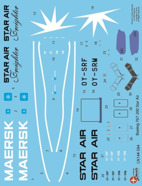 Lima November - 1/200 Star Air Boeing 767-200F old and new scheme. Decals only