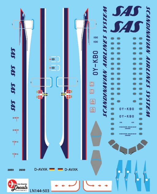 Lima November - 1/144 Airbus A319 OY-KBO in SAS 2006 50th Anniversary Retro scheme decals