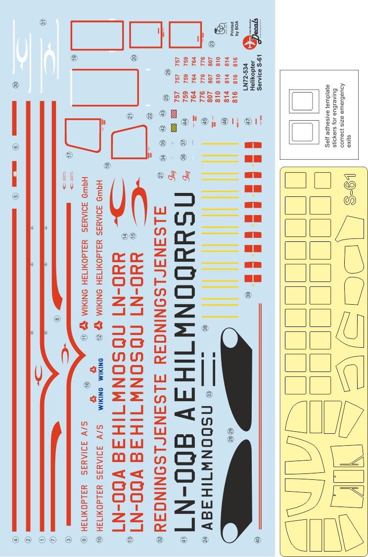 Lima November - 1/72 Helikopter Service Sikorsky S-61N first cs, includes decals for Wiking Helicopter Service. Includes masks