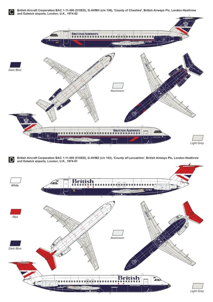 4x paint schemes for Bac 1-11 airlines: