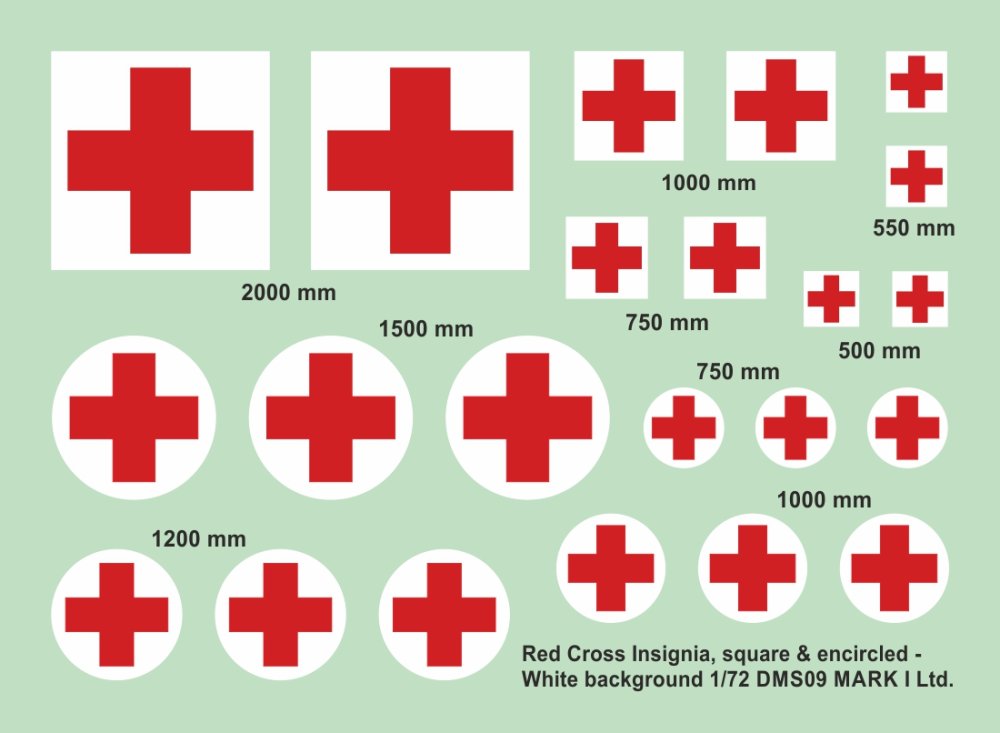 Mark 1 - 1/72 Red Cross Insignia, square & encircled White background (1/72), 2 sets