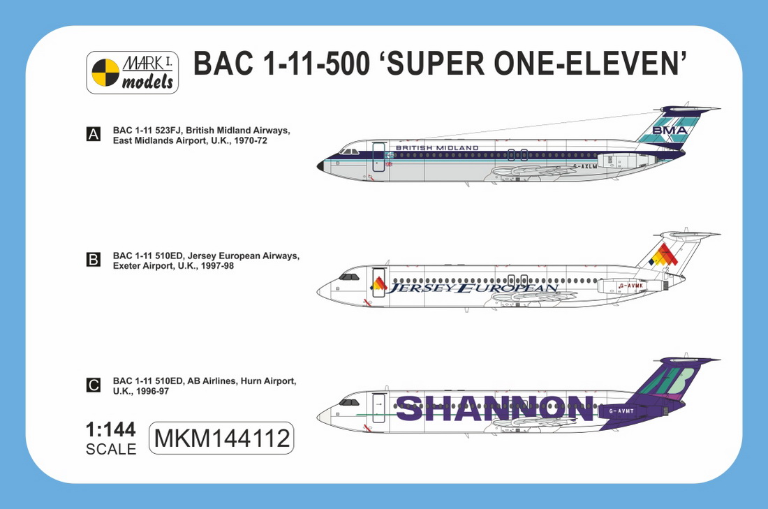 Mark I Models - 1/144 Bac 1-11-500 'British Midland, Jersey European, Shannon'