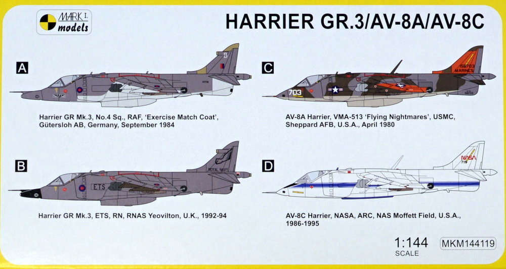 Mark I Models - 1/144 Harrier GR.3/AV-8A/AV-8C 'Special Markings' (RAF, RN, USMC)