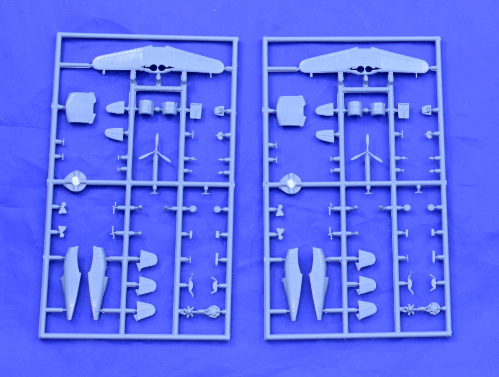 Two injection-moulded kits are supplied in this box and each kit contains 40 parts and one clear part (the cockpit windshield). A comprehensive decal sheet is included.