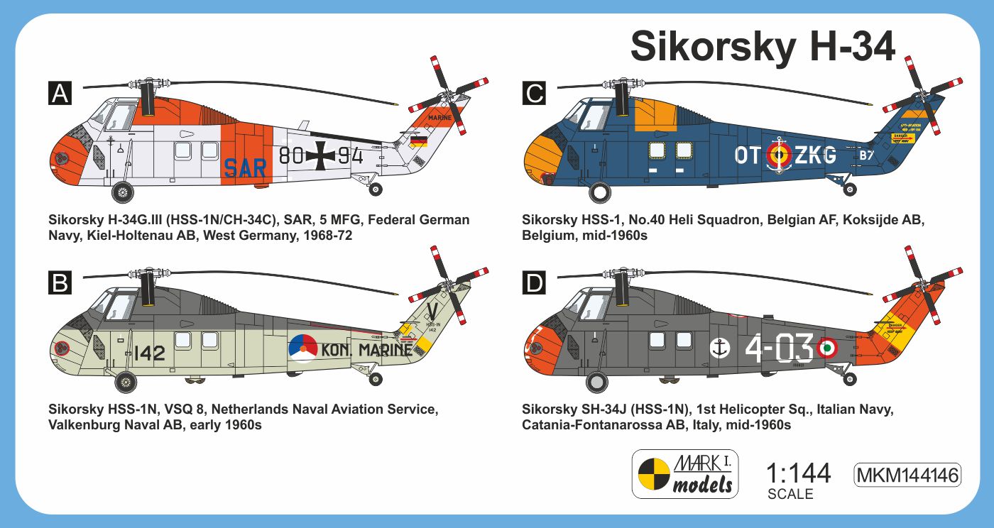 Mark I Models - 1/144 Sikorsky H-34 'In Europe' 1 kit included, boxed. (Because of external differences this is a new tool model and not the earlier Westland Wessex kit re-boxed)