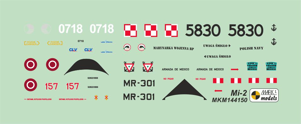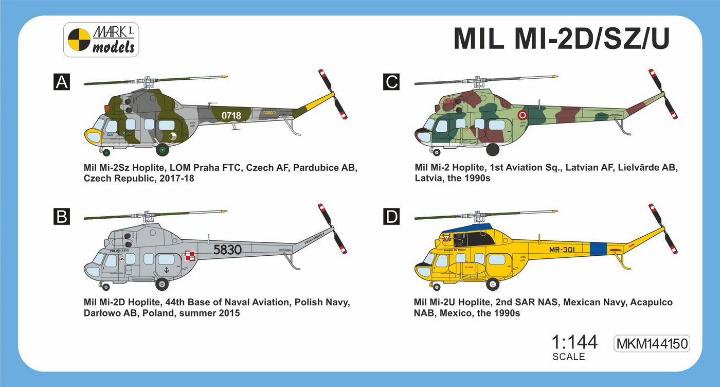 Mark I Models - 1/144 Mil Mi-2 Hoplite 'Around the World' (2in1 = 2 kits in 1 box) (Czech AF, Polish Navy, Latvian AF, Mexican Navy)