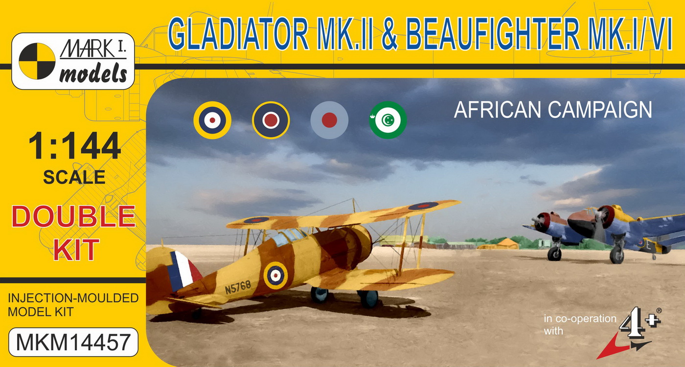 Mark I - 1/144 Gloster Gladiator Mk.II & Bristol Beaufighter Mk.IC/Mk.VIF 'North Africa' (double kit) The North African Campaign of WWII took place from June 1940 to May 1943. It included campaigns fought in the Libyan and Egyptian deserts, in Morocco, Algeria and Tunisia.