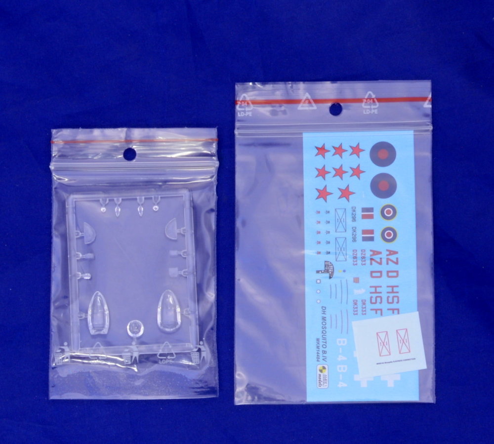 This injection-moulded kit contains 64 parts and eleven clear parts (the cockpit canopy, nose window, wing tips with position lights etc.). A comprehensive decal sheet is included.
