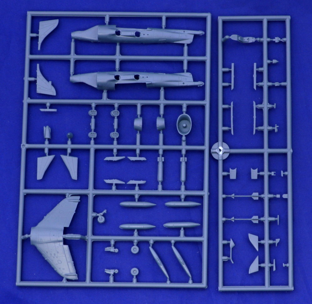 One injection-moulded kit is supplied in this box, it contains 53 parts and one clear part (the cockpit canopy). A comprehensive decal sheet is included.