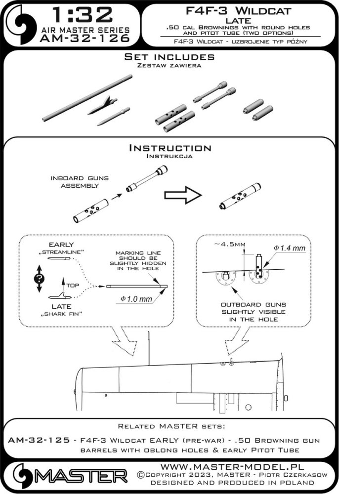 MASTER (PL) - 1/32 F4F-3 Wildcat Late .50 Browning gun barrels
