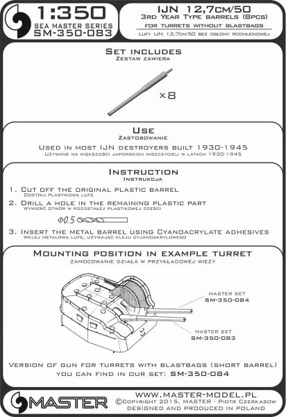 MASTER (PL) - 1/350 IJN 12,7cm/50 for turrets w/o blastb.(8 pcs)