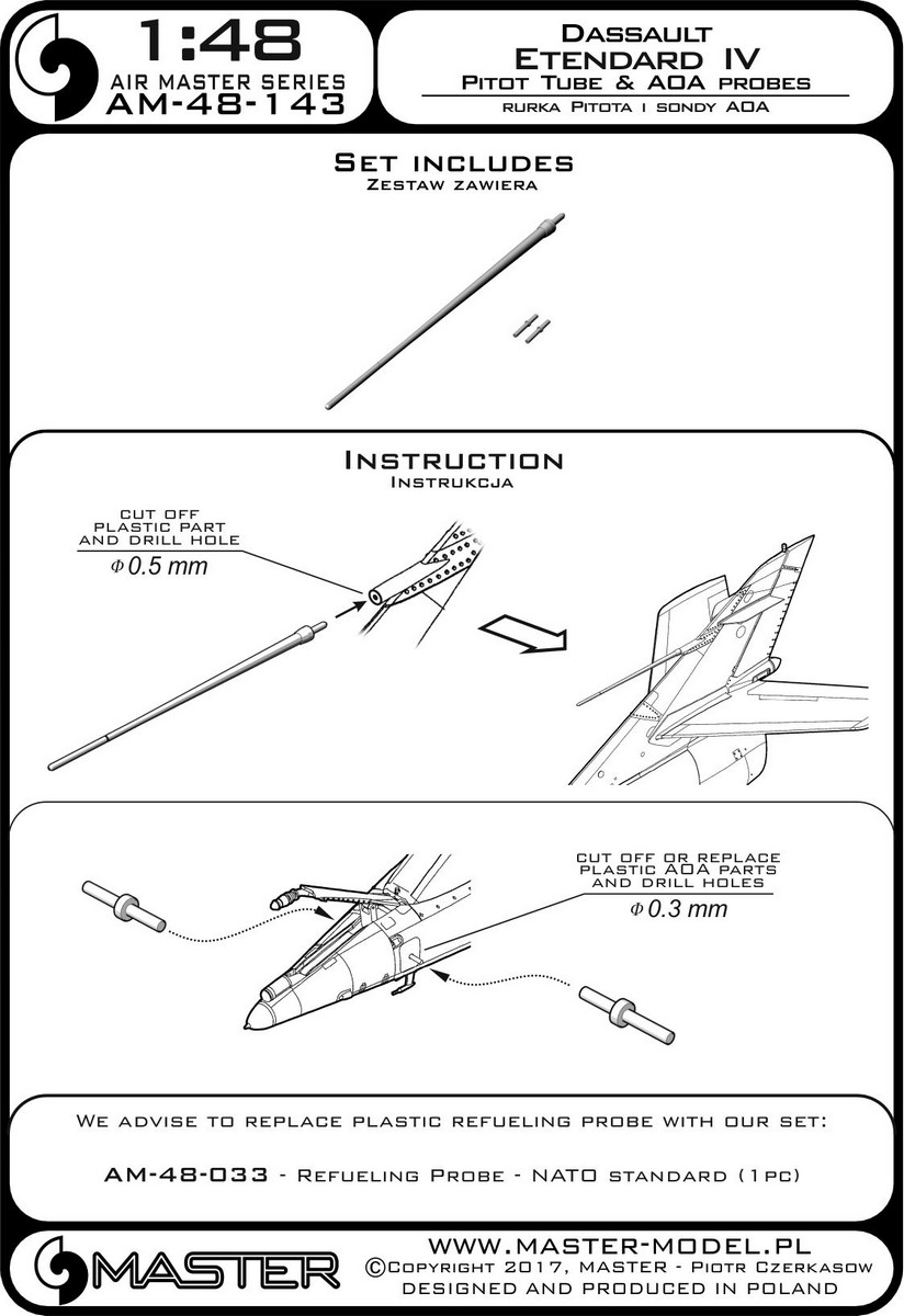 Master (PL) - 1/48 Dassault Etendard IVM/IVP - Pitot Tube & Angle of Attack probes (for Airfix, Heller, Kinetic Model Kits and Kitty Hawk Model kits)