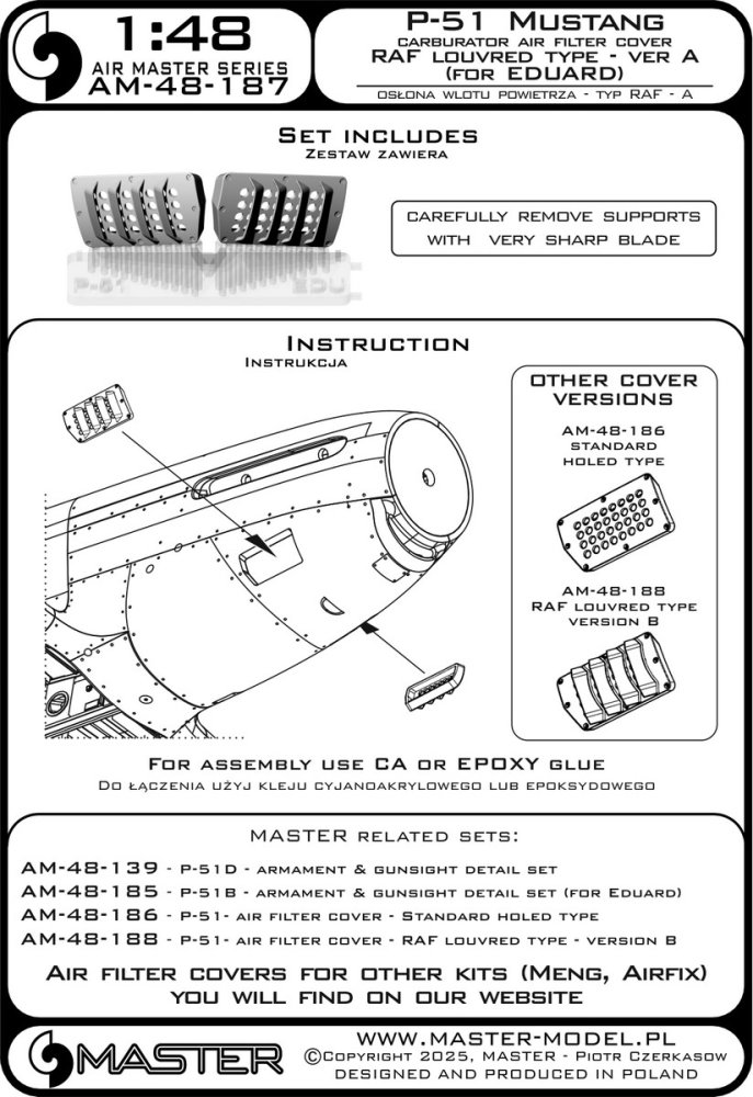 MASTER (PL) - 1/48 P-51 Mustang carbur.air filter cover RAF 1