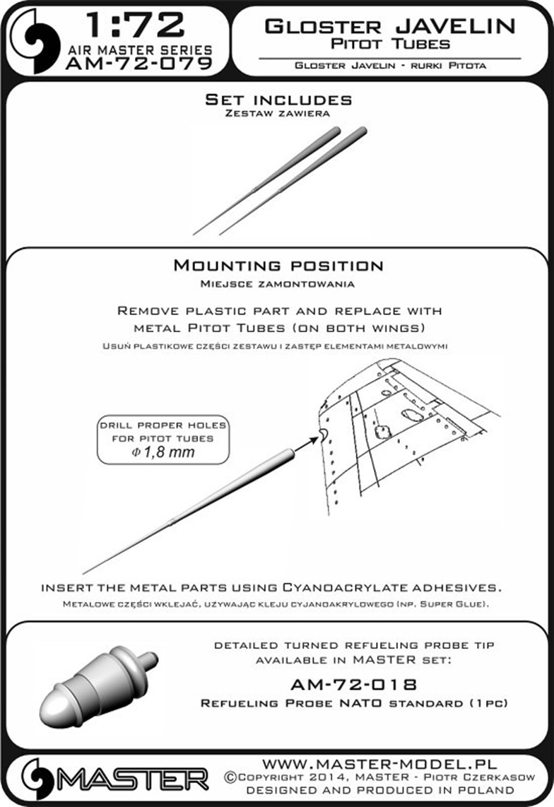 Master (PL) - 1/48 Gloster Javelin - Pitot Tubes
