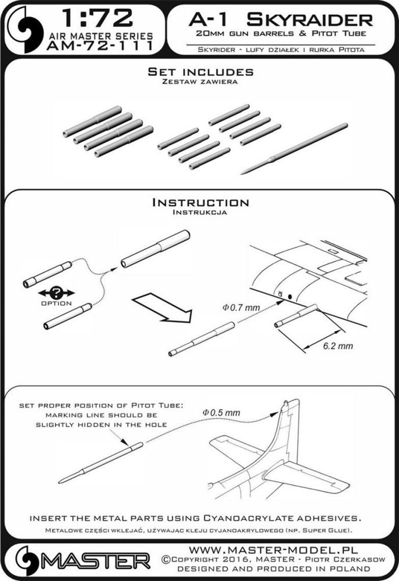 Master (PL) - 1/72 A-1 Skyraider - 20mm cannon barrels and Pitot Tube