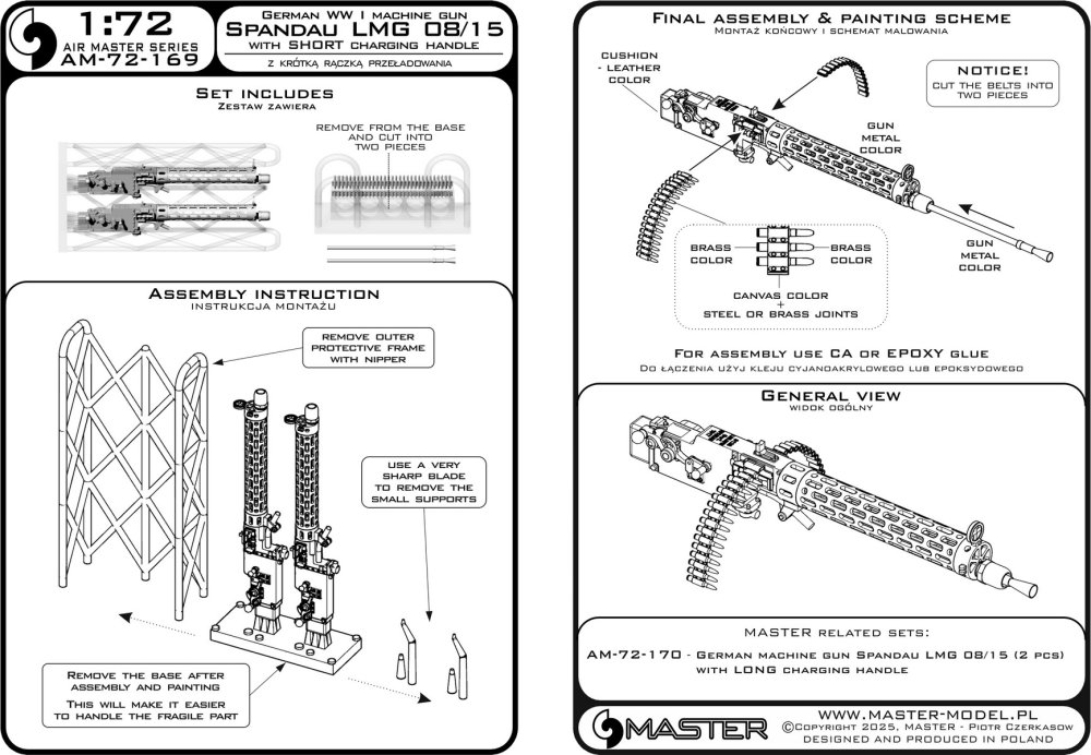 MASTER (PL) - 1/72 Spandau LMG 08/15 with SHORT charg.handle 2x