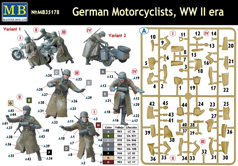 Masterbox - 1/35 German Motorcyclists, WWII (4 fig.) (Motorcycle not included)