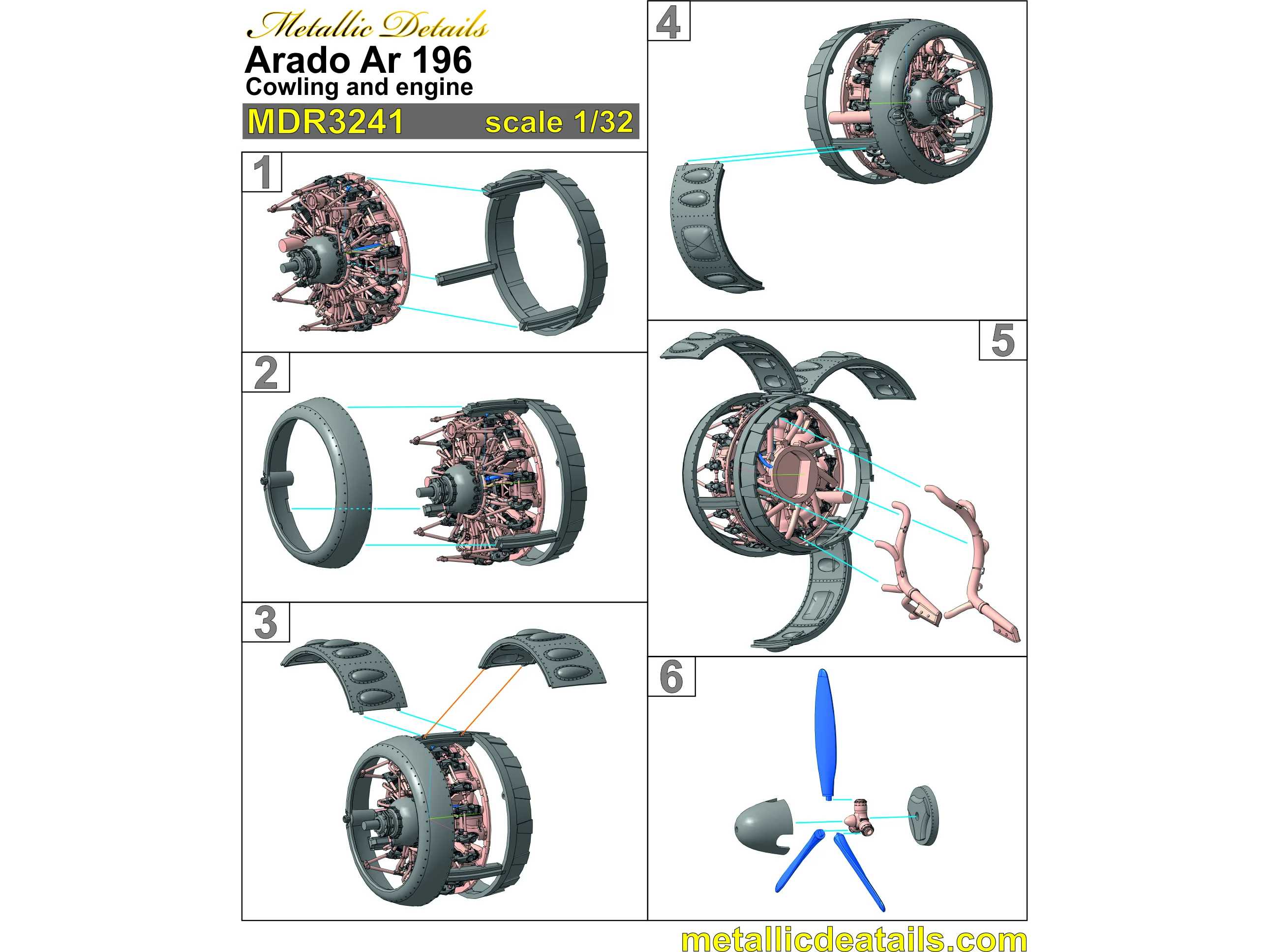 Metallic Details - 1/32 Arado Ar-196A-3 cowling and engine for Revell 3d-printed