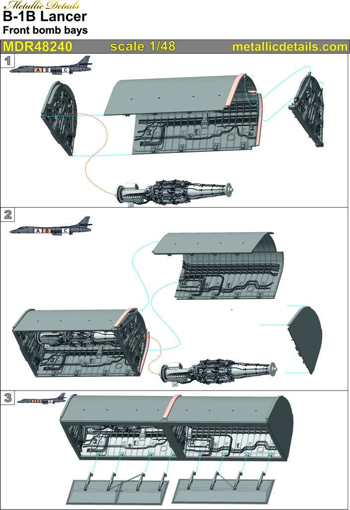 Metallic Details - 1/48 Rockwell B-1B Lancer front bomb bays 3d-printed for Monogram and Revell