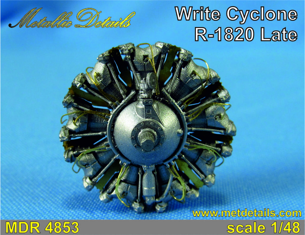 Metallic Details - 1/48 Wright R-1820 Cyclone late for Boeing B-17 Flying Fortress, Boeing 307, Brewster F2A, Curtiss AT-32-A Condor, Curtiss SBC-4 Helldiver, Curtiss P-36 Mohawk, Curtiss Sc Seahawk, Curtiss-Wright CW-21, Douglas A-33, Douglas B-18, Douglas DC-2, Douglas DC-3 (DST, G-102 and G-202), Douglas Super DC-3, R4D-8 / C-117, Douglas DC-5, Douglas Df Wright SGR-1820G-2, Douglas Sbd Dauntless, Fma AeMB.2 Bombi, General Motors FM-2 Wildcat, Grumman TF-1 / C-1 Trader, Grumman E-1 Tracer, Grumman FF, Grumman F3F, Grumman XF5F, Grumman XP-50, Grumman HU-16 Albatross, Grumman J2F Duck, Grumman S-2 Tracker, Lockheed 14, Lockheed Lodestar, Lockheed Hudson, Martin B-10, North American NA-44, North American O-47, North American P-64, North American T-28B/C/D Trojan, Northrop YC-125 Raider, Piasecki H-21, Polikarpov I-16, Ryan Fr Fireball, Sikorsky S-58/HUS/HSS/H-34.