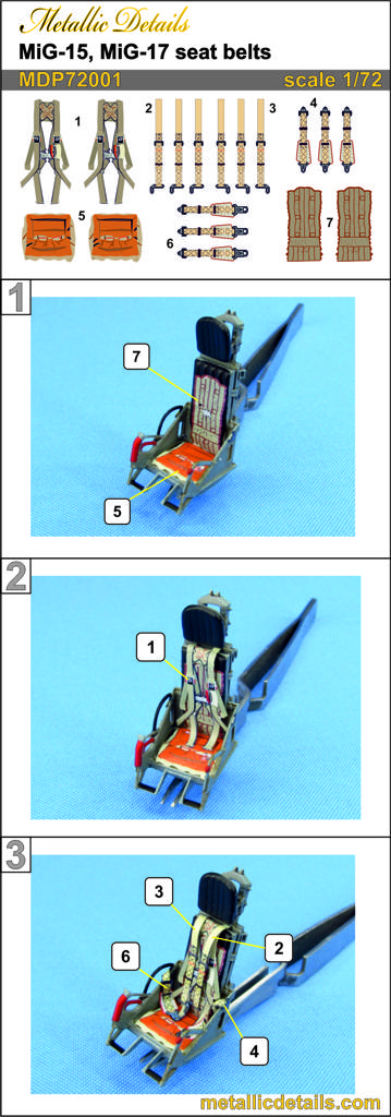 Metallic Details - 1/72 Mikoyan MiG-15/MiG-17 Seat belts 3d-printed for Airfix and Az Model