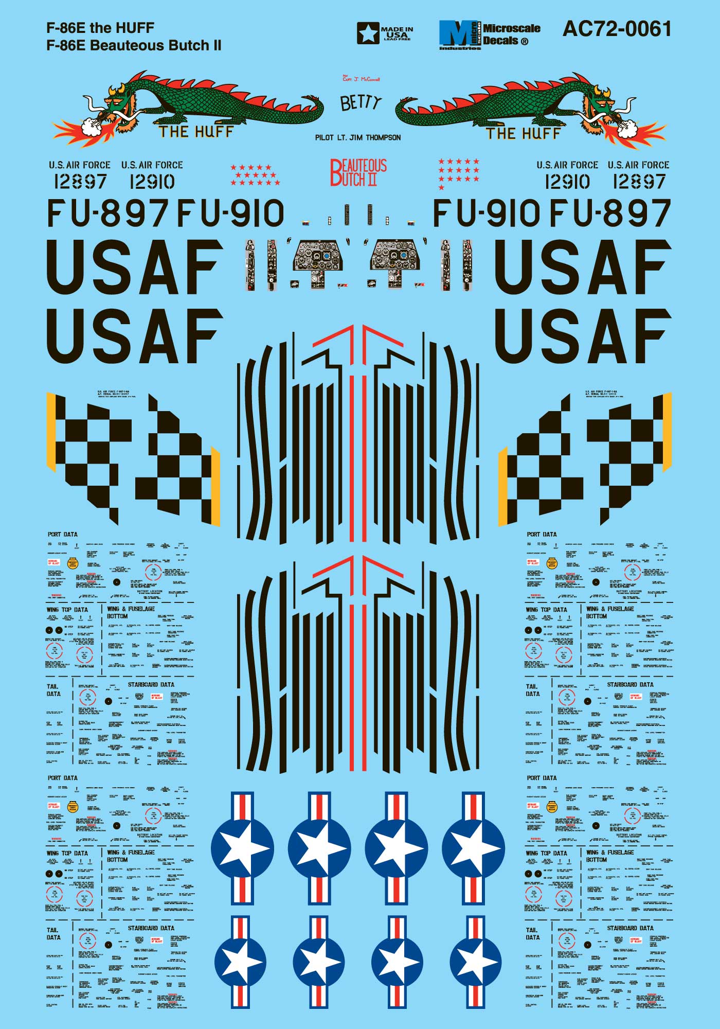 Microscale - 1/72 North-American F-86E Sabre (2) 12890 7FU-897 51st FIW Lt James Thompson 'The Huff', 12910 16th FS, 51st FIW Col Joseph McConnell Jnr 'Beauteous Butch II/Betty' 16 Kills. Stencil Data included for both.