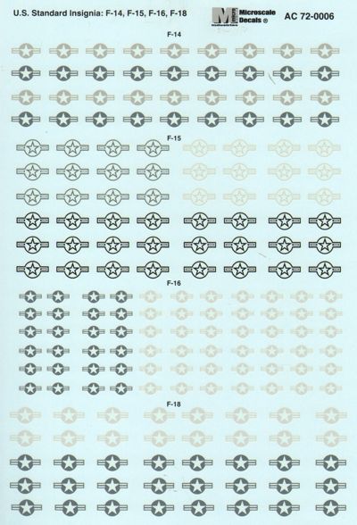 Microscale - 1/72 U.S. Standard Insignia- Grumman F-14A/F-14B, McDonnell F-15A/F-15B/F-15C/F-15D/F-15E Eagle, F-16, And F/A-18.