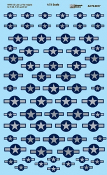 1/72 WWII US Late Lo-Vis Insignia For P-38J, P-51D, P-47D