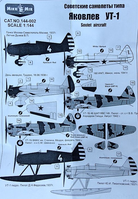 MIKRO-MIR - 1/144 Yakovlev UT-1 Soviet Aircraft (3-in-1)