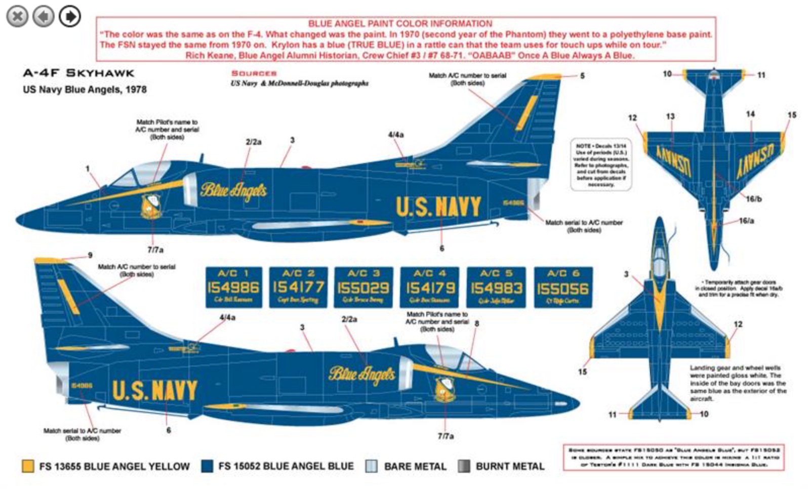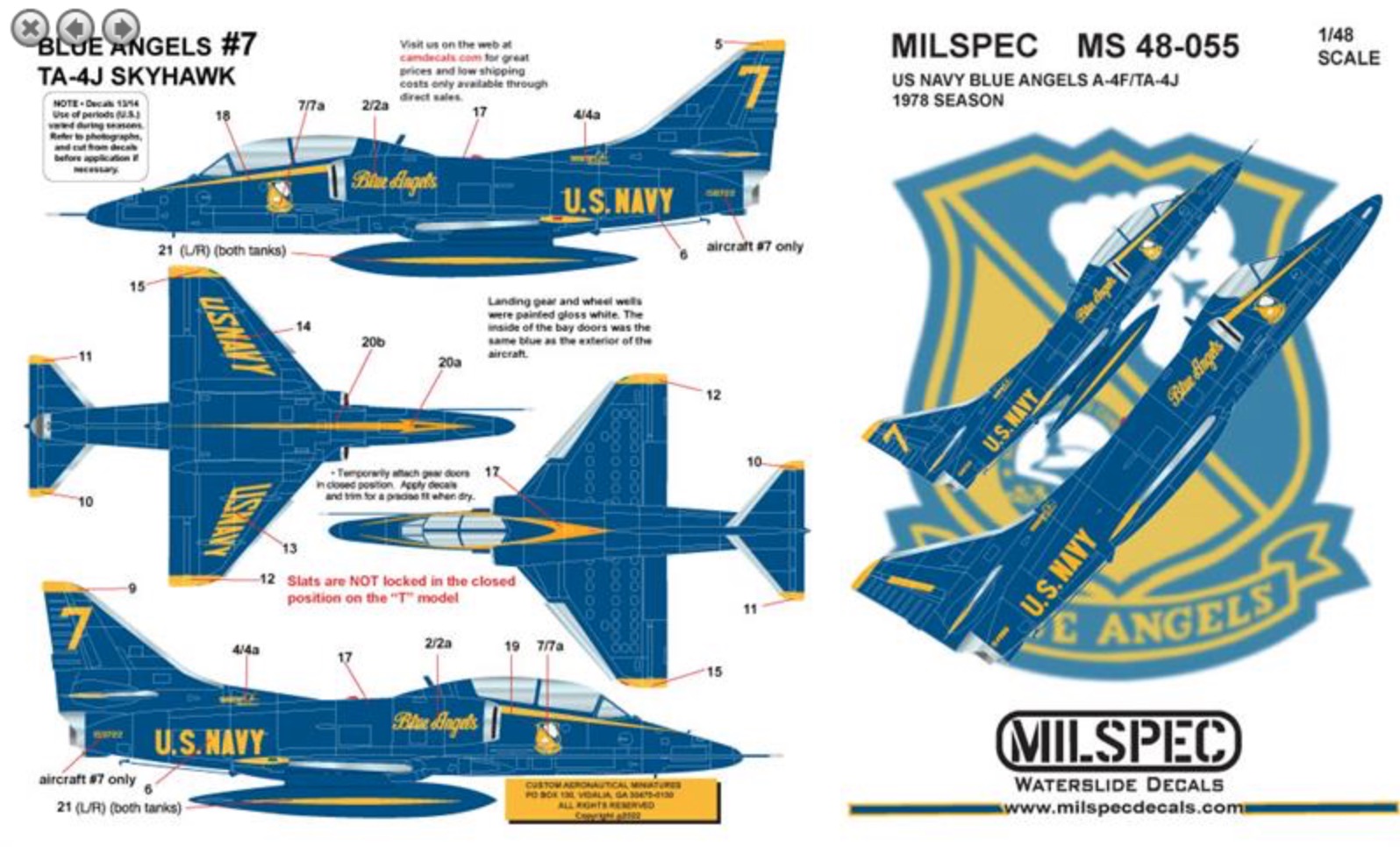 Milspec - 1/48 Douglas A-4F Skyhawk US Navy Blue Angels 1978. Blue Angels A-4F/TA-4J, 1978 Season Decals For One A-4F Or One TA-4J