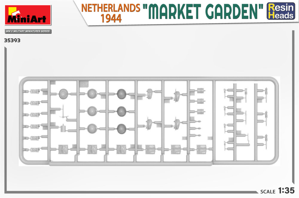 Miniart - 1/35 'market garden' netherlands 1944. resin heads kit contains models of five figures with resin heads, weapons and equipment.
